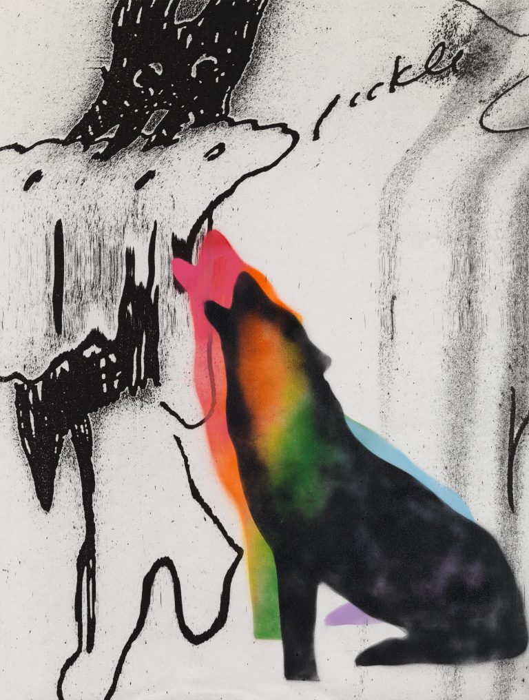 Spray paint and silkscreen on canvas