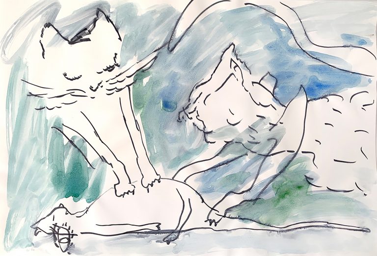 Watercolor and ink on paper